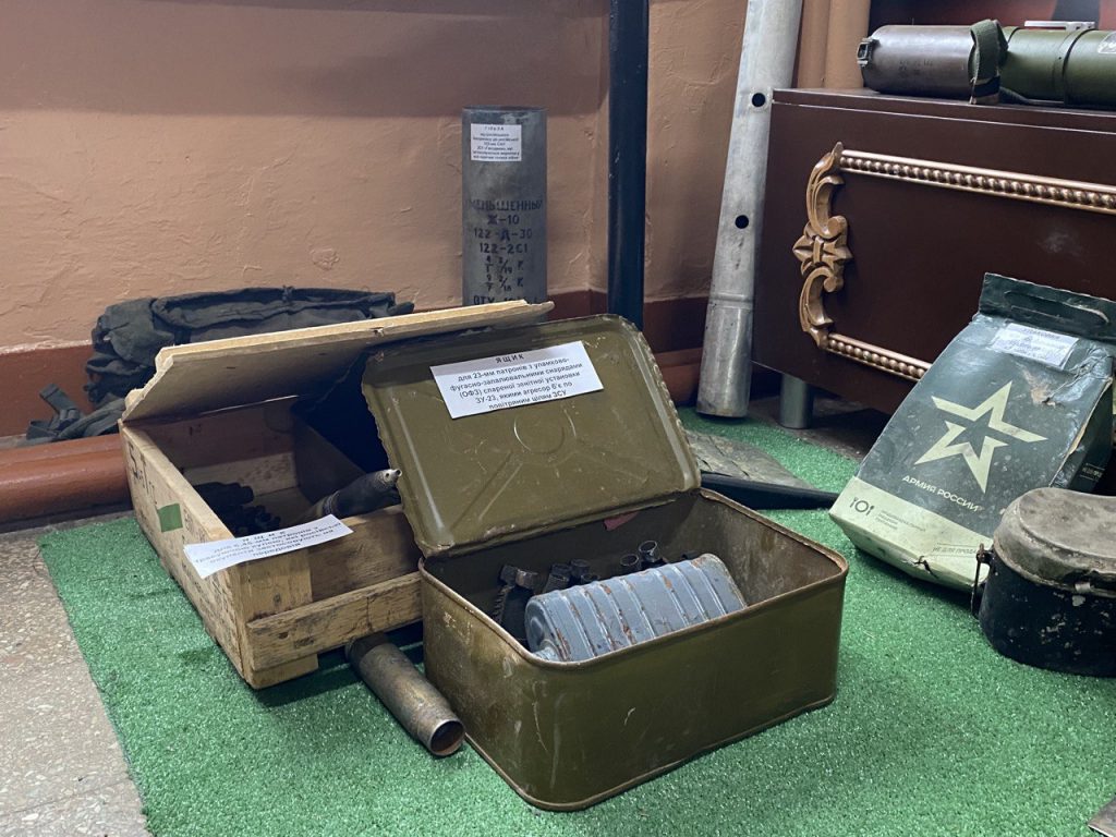 Тут є бойові прапори, передані закладу з фронту. Представлені також зразки зброї – як української, так і трофейні. Окремо організована експозиція, що відображає волонтерську діяльність та внесок у Перемогу України колективу ліцею.